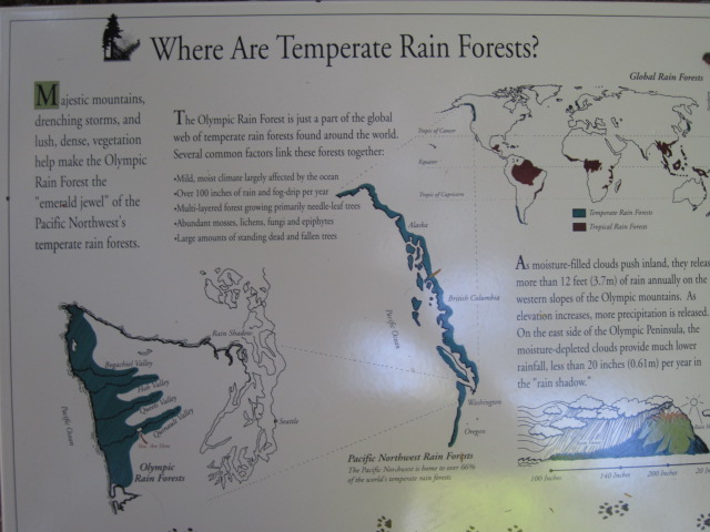 After New Mexico and Arizona, we drove two long days, without tourist stops, on our way to Washington and the Olympic Peninsula (OP). Of course Utah, Idaho and Oregon have their own pleasures, but we’d focused our itinerary on some key destinations like the OP and its temperate rain-forests (with a side trip to Victoria BC). Besides, we were also due in Tacoma at a weaving conference my wife would attend. The contrast between high desert and rain-forest re-energized our tourist hunger.