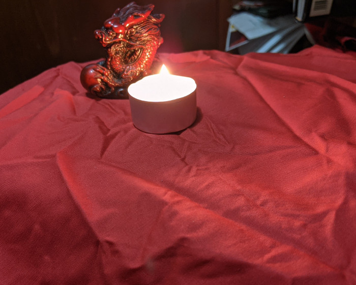 On this first Day of Samhain, I’ve lit a small fire in our woodstove. This Saturday’s sunny, but that autumnal nip in the air is real, and the dampness of early morning fog crept into the house. My wife and I were outdoors early and suddenly we were noticing cardinals. Maybe because many of the leaves are already off the trees, we speculated. Maybe it’s easier to spot them. The bright birds match some of the leaves as they darted in and around the trees. Depending on the weather, sometimes they’ll winter over here.