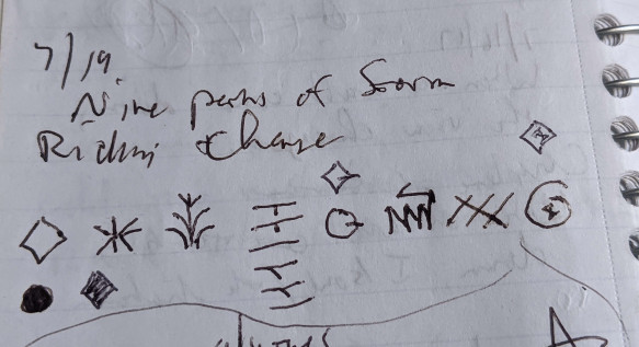 I write “nine ways” (or feorhneru, the Old English plural) and at this point don’t know what they are. I can feel the activity or motion or movement that often presages words and helps them to manifest, but so far no specifics. So I list the nine headings and start to write, know the words will come.