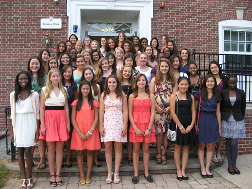 If you’re wondering why I haven’t posted for several weeks, I make my apologies. And here are my 48 excuses (give or take a couple who may not be in the picture) … Yes, classes have resumed. Now I’m back to the 24-7 life of a private boarding school teacher. Below are our girls in special dress, just before the new student dinner with faculty on the evening of move-in day, near the start of term.