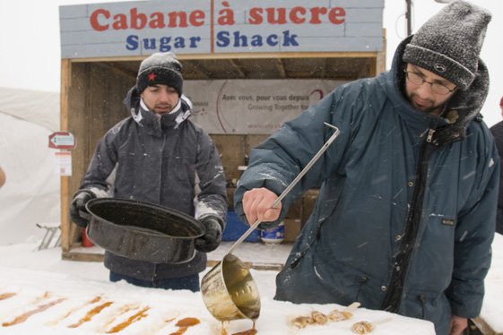 The French further north have their cabanes a sucre, where the temperatures haven’t risen quite so high and more of the white stuff remains.
