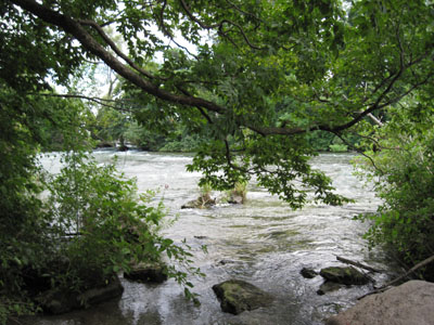 This day was different. A steady damp breeze rustled the leaves of the trees. On another treeless outcrop a short way upriver, the harsh voices of the flock of gulls were only intermittently inaudible over the tumble of water and the dull roar of the falls downriver.
