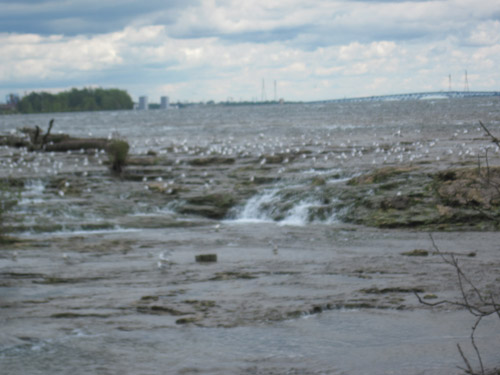 This summer a family reunion in Pittsburgh provided the opportunity to attend to this final matter. My wife and I drove there and back, and on the way out last Friday afternoon, after a slow cruise along Lakeshore Drive that hugs the south shore of Lake Ontario, we made our way to downtown Niagara Falls and then over the bridge onto Goat Island. So around 2:00 pm or so, you could have seen me squatting at the edge of the Niagara River, a few hundred yards above the Falls, on the second of the Three Sisters islands that cling to rocky outcrops in the rapids. The day was overcast but pleasant — typical of western NY, with its delightfully mellow lake-effect summers. Between my feet rested the heavy plastic bag of dad’s ashes, in the plain box the funeral home had provided.