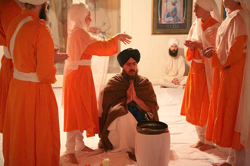 Images: Ghana initiation; Catholic ordination; Sikh Amrit Sanchar.