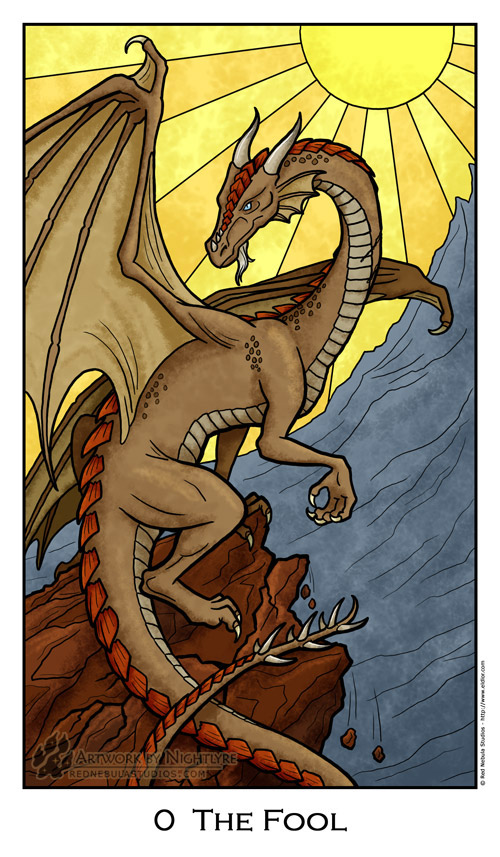 IMAGES: Fool from the Rider Waite deck; dragon.