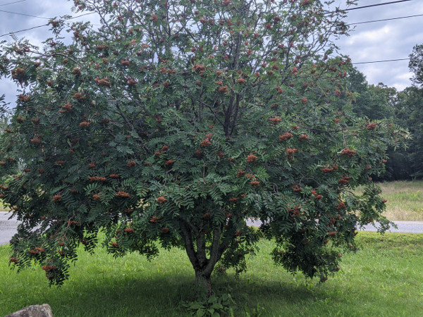 I see the Rowan’s berries slowly ripen to red in the August sun. The previous European-born owner of our land planted the tree squarely in the front lawn, a proper tree of protection, but also of beauty, as it puts forth leaves and white blossoms in spring, then red fruit in autumn.