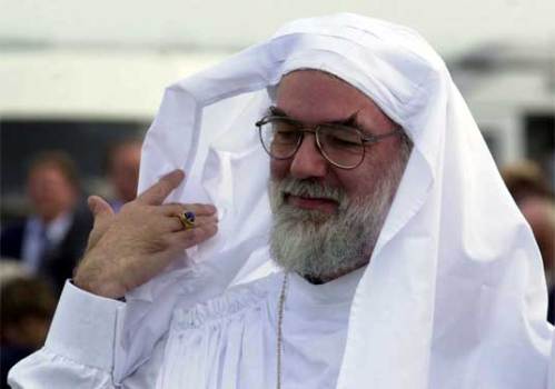 The Gorsedd of the Bards has adopted the words as their motto, and there’s a bardic chair with them carved into its back for winners of the Welsh National Eisteddfod. (The words appear on the larger chair to the right, just below the /|\. The glare of the camera flash obscures part of the line.)