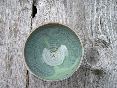 [Originally when I took the photo I was simply looking for a background that would contrast with the bowl. Only later after I’d uploaded the photo did I realize that the grain of the wood holds at least as much interest as the spiral design of the bowl. Talk about not seeing the obvious.]